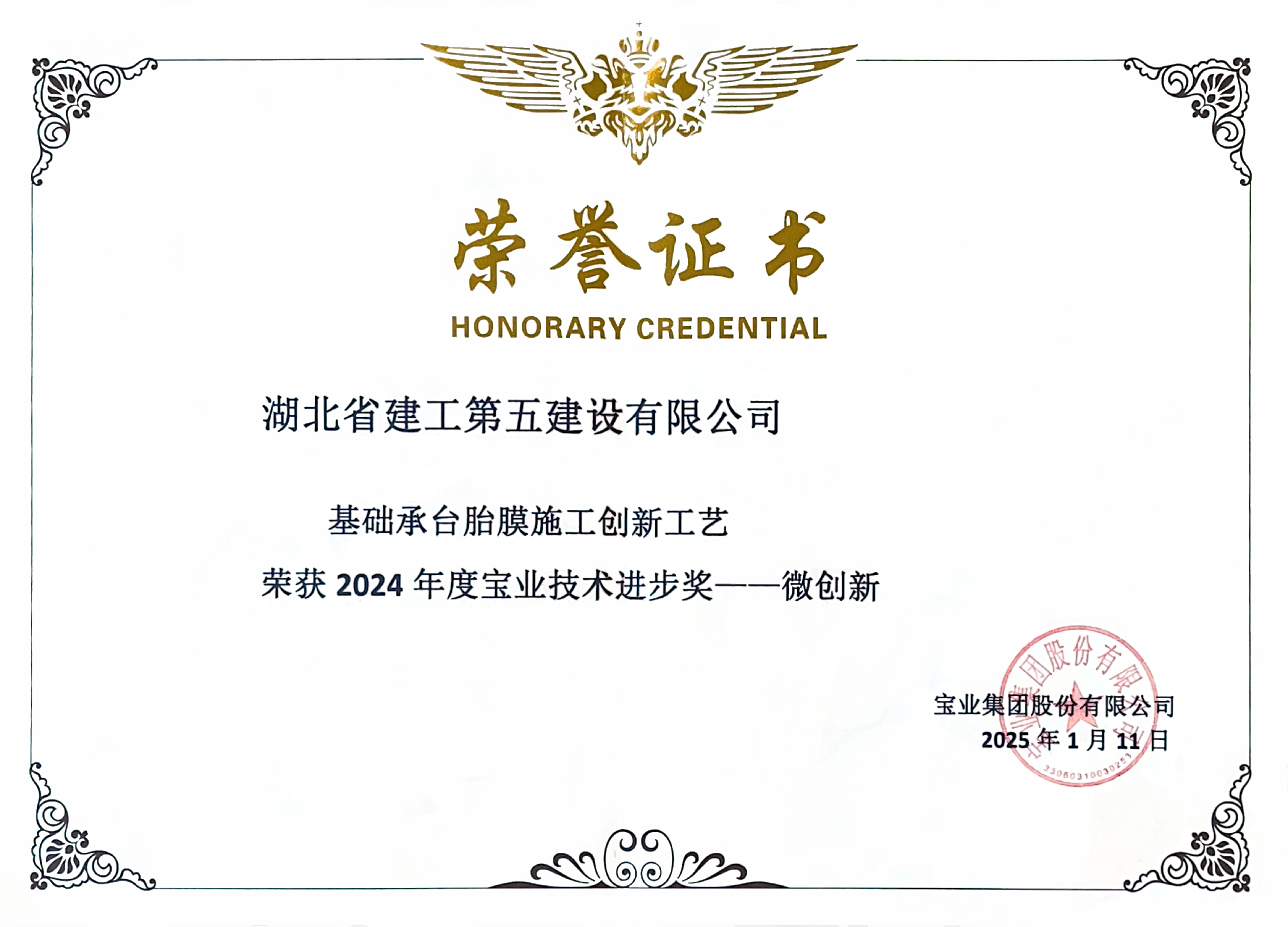 - 2025-01-16湖北省建工第五建設(shè)有限公司榮獲寶業(yè)集團(tuán)2024年度寶業(yè)技術(shù)進(jìn)步獎(jiǎng)微創(chuàng)新獎(jiǎng)...[圖]